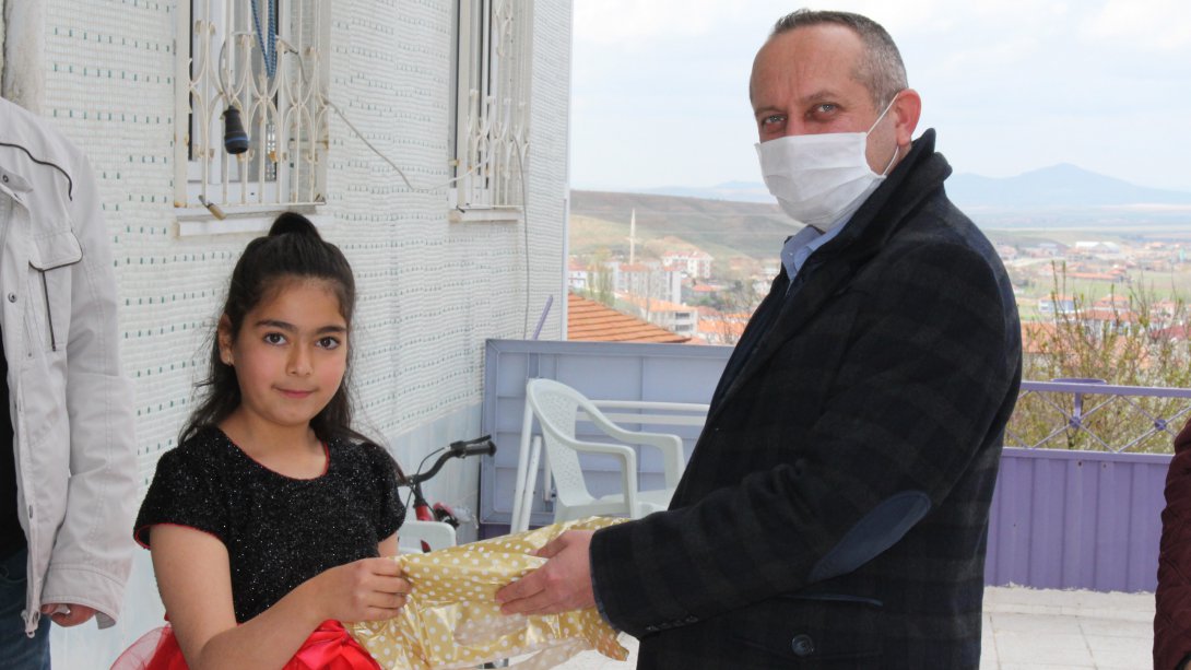 İlçe Milli Eğitim Müdürü Cüneyt Yoldaş, Ulu Önder Mustafa Kemal Atatürk’ün çocuklara armağan ettiği 23 Nisan Ulusal Egemenlik ve Çocuk Bayramında doğan çocuklara özel sürpriz yaptı. İlçe Milli Eğitim Müdürü Cüneyt Yoldaş, Ulu Önder Mustafa Kemal Atatürk’ün çocuklara armağan ettiği 23 Nisan Ulusal Egemenlik ve Çocuk Bayramında doğan çocuklara özel sürpriz yaptı.Koronavirüs nedeniyle bu yıl evlerinde kutlanan bayram nedeniyle ilçemiz merkez ve köylerinde yaşayıp bu özel günde doğan 7 çocuğun evine çeşitli hediyelerle birlikte ziyarete gidilerek sürpriz yapılarak hem doğum günleri hem de bayramları kutlandı.Gerçekleşen ziyarete İlçe Milli Eğitim Müdürü Cüneyt YOLDAŞ, Şube Müdürümüz Haluk TİMUR ve İlçe Emniyet Müdürlüğünden Polis Memuru Büşra ÖZCAN eşlik etti.