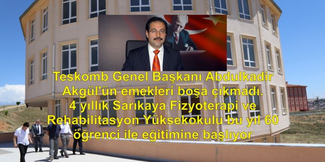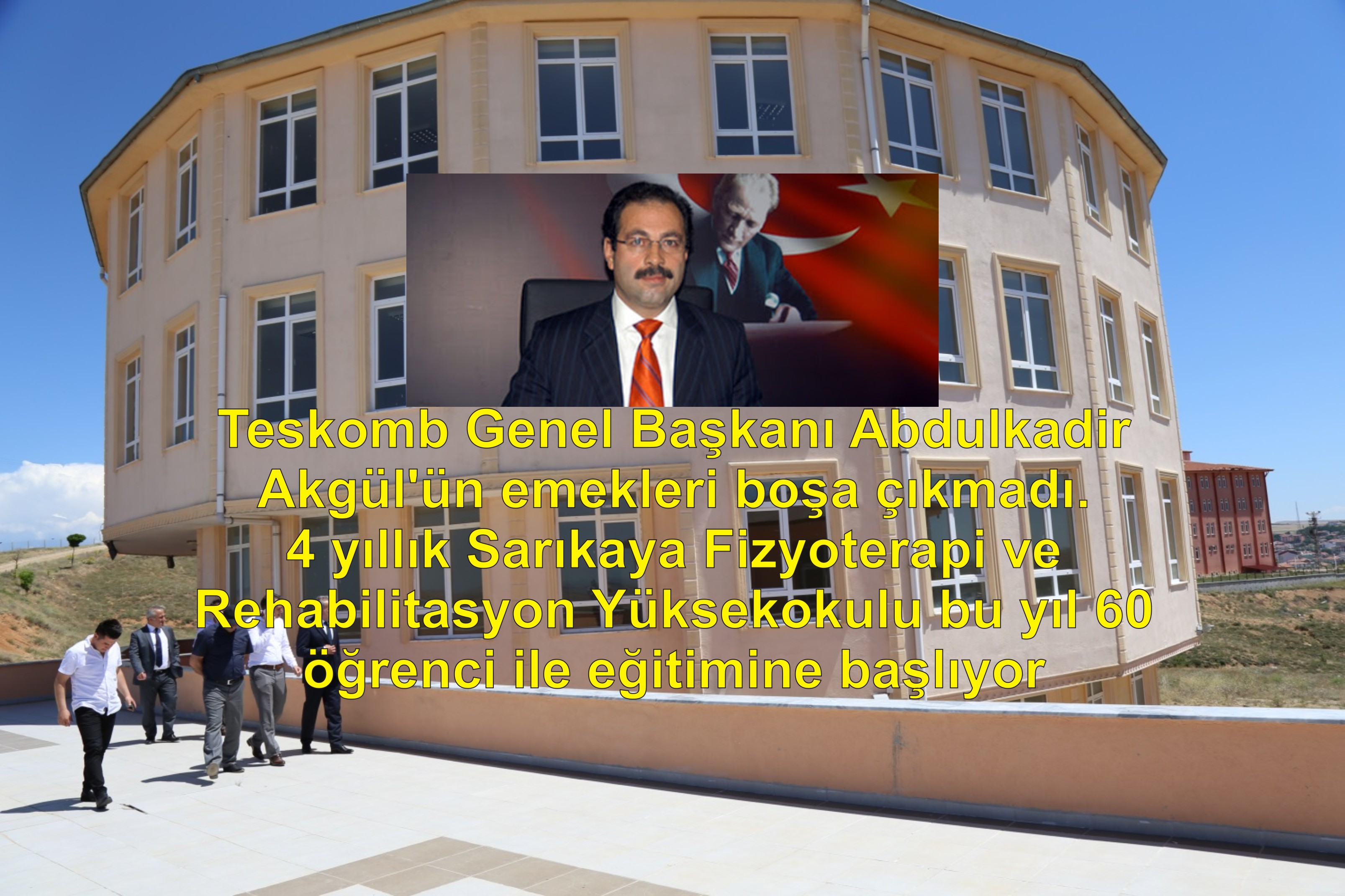 Teskomb genel başkanı Abdulkadir Akgül’ün emekleri boşa çıkmadı. 4 yıllık Sarıkaya Fizyoterapi ve Rehabilitasyon Yüksekokulu bu yıl 60 öğrenci ile eğitimine başlıyor. 4 yıllık Sarıkaya Fizyoterapi ve Rehabilitasyon Yüksekokulunun açılmasında en büyük emeğe sahip olan Yozgat Eski Ak Parti Milletvekili ve TESKOMB genel başkanı Abdulkadir Akgül ile yaptığımız telefon görüşmesinde Akgül “Sarıkaya halkına layık olduğu 4 Yıllık Yüksekokulu açtık , Allah tamamına erdirir inşallah. Emeği geçen Milletvekili Arkadaşlarıma teşekkür ederim” dedi.