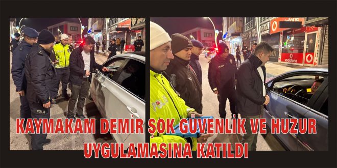 Dün akşam İlçe Emniyet Müdürlüğü ve İlçe Jandarma Komutanlığı ekiplerimiz tarafından yapılan Şok Huzur ve Güven uygulamasına katılan ilçemiz Kaymakamı Ahmet Nuri Demir denetimlere eşlik etti.