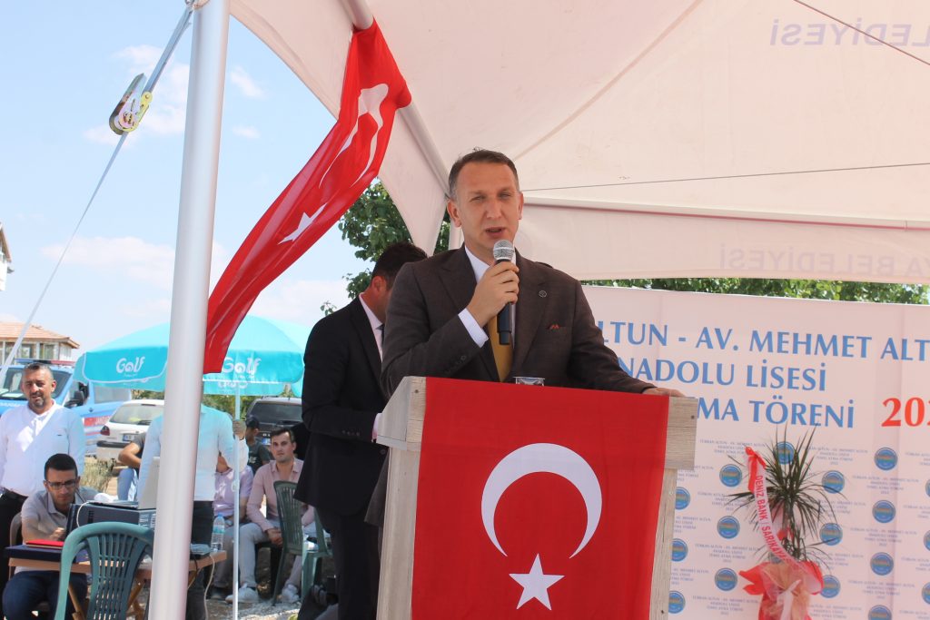 Milli Eğitim Bakanlığı ile Çevre Şehircilik Ve İklim Değişikliği Bakanlığı arasında imzalanan arsa karşılığı okul yaptırma protokolü kapsamında ve arsa karşılığı hayırseverimiz Av. Mehmet Altun ve eşi Türkan Altun tarafından yaptırılacak olan 24 derslikli lise binasının temel atma töreni düzenlendi.
