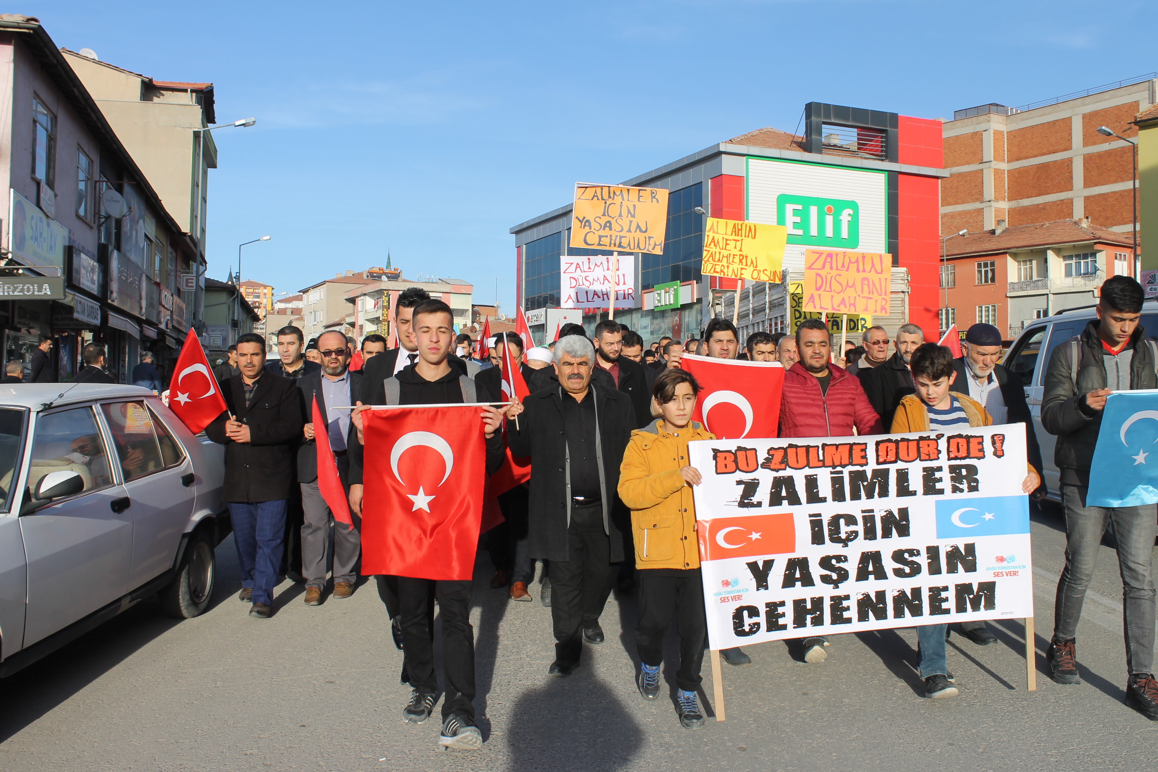Kızıl Çin’in Doğu Türkistan’da yıllardır uyguladığı zulüm, onların “Sessiz Çığılığına” kulak veren Sarıkaya daki STK’lar tarafından düzenlenen yürüyüşle kınandı. Kızıl Çin’in Doğu Türkistan’da yıllardır uyguladığı zulüm, onların “Sessiz Çığılığına” kulak veren Sarıkaya daki STK’lar tarafından düzenlenen yürüyüşle kınandı.Miting Alanında toplanan katılımcılar, buradan Baran Caddesine doğru yürüyüşe geçtiler.” Kahrolsun kızıl Çin, Doğu Türkistan’dan defol ” sloganlarıyla devam eden yürüyüşün ardından tekrar Miting Alanına dönüldü.Burada yapılan dua programı ise Çarşı Camii müezzini Nizam OĞUZ’un okuduğu kur’an tilaveti ile başladı. İlçe Müftüsü Emrah Kandemir’in okuduğu duada sonra , İHH’dan Yunus Emre VURAL’ın basın açıklamasıyla devam edildi. Vural’ın basın açıklamasında; “Güzel Sarıkayamızın kimden ve nereden gelirse gelsin, kime yapılırsa yapılsın zulmün karşısında Hakkın ve haklının yanında duran cesaretli yürekli bir o kadar da merhametli insanları bildiğiniz üzere Çin Doğu Türkistan’da “kültürel zenginleştirme “adı altında büyük bir zulüm uygulamaktadır.İnsanların iradelerini haklarını ve özgürlüklerini ellerinden alıyor, ibadetlerini yapmalarına engel oluyor ibadet haneleri tahrip ediyor tek suçu müslüman olmak olan bu insanlara kamplarda hapishanelerde akla hayale gelmedik işkenceler uyguluyor bu insanların çok azı buralardan sağ çıkıyor, çıkanların çoğu ise ya sakat kalıyor ya da akli dengesini kaybediyor zaten bir çoğuda yapılan işkencelere dayanamayıp hayatını kaybediyor,Yunus Emre Vural açıklamasını şöyle sürdürdü “bugün buraya Doğu Türkistan’ın bağımsızlık mücadelesinin ,zalimlere karşı direnişinin yanında olduğumuzu haykırmak için toplandık. Biz bir ümmetiz Kudüs Filistin bu ümmet için ne kadar için önemli ise Doğu Türkistan da bu ümmet için o kadar önemlidir Doğu Türkistan’ın tıpkı Konya gibi Bursa gibi Diyarbakır gibi gönül coğrafyamızda bir yeri vardır biz Doğu Türkistan’ı Anadolu’dan ayırmayız onun için diyoruz ki: Doğu Türkistan anadoludur zulme karşı ses ver Türkiye…Bütün dünya Doğu Türkistan’ın “sessiz Çığılığına ” kulak tıkarken, bizler Sarıkaya daki STK lar olarak diyoruz ki: belki bu zulmü durdurmaya gücümüz yetmez ama Nemrut’un ateşine su taşıyan karınca misali en azından safımızı belli etmiş oluruz.Ve diyoruz ki: “biz değilsek kim? bugün değilse ne zaman?”Program ilçe müftümüz Emrah Kandemirin yaptığı güzel ve anlamlı dua ile son buldu.